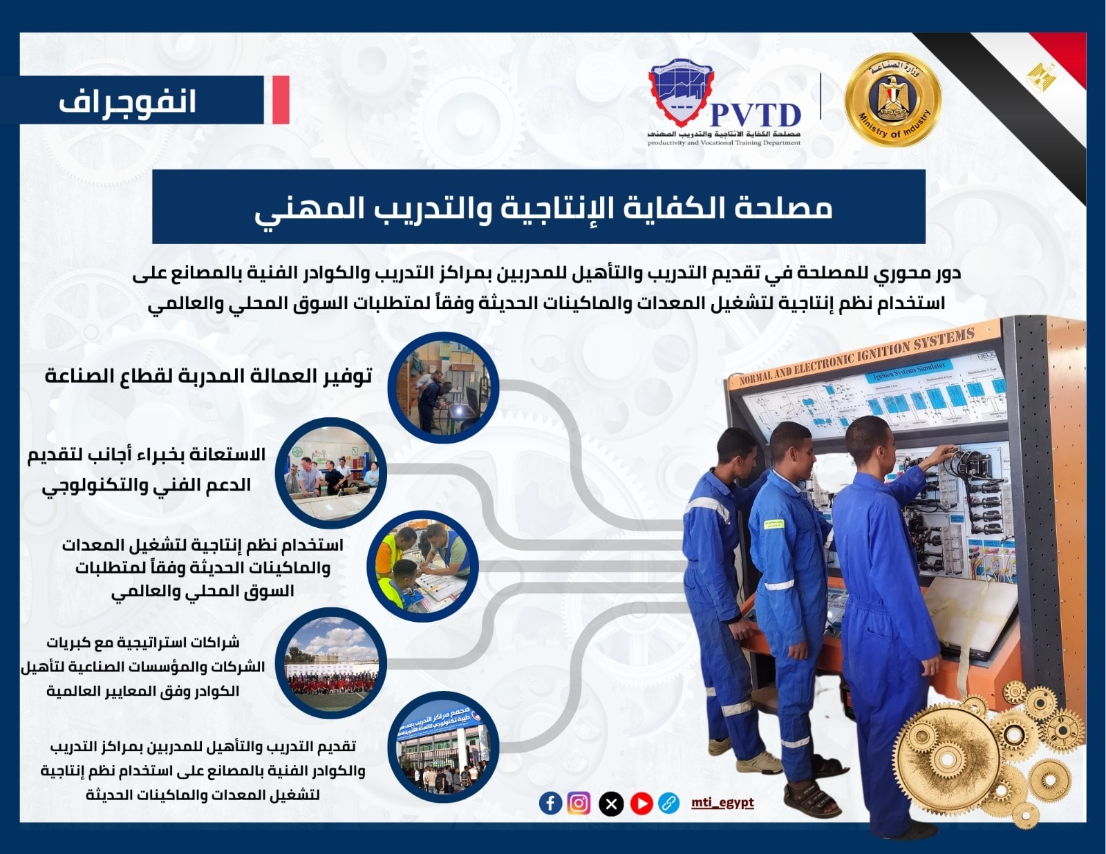 تواصل مصلحة الكفاية الإنتاجية والتدريب المهني أداء دورها الحيوي في دعم قطاع الصناعة المصري، من خلال توفير العمالة الفنية المؤهلة والمدربة وفقًا لأحدث النظم العالمية.