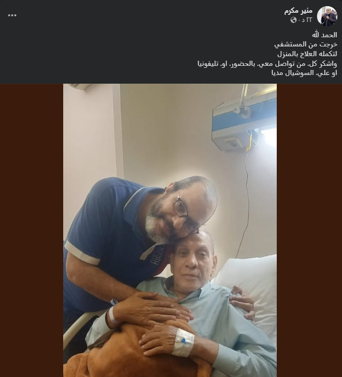 كشف الفنان منير مكرم، عن تطورات حالته الصحية، وذلك بعد نقله للمستشفى أمس، إثر تعرضه لوعكة صحية مفاجئة، أدت لقلق الجمهور وازدياد التساؤلات حول صحته.