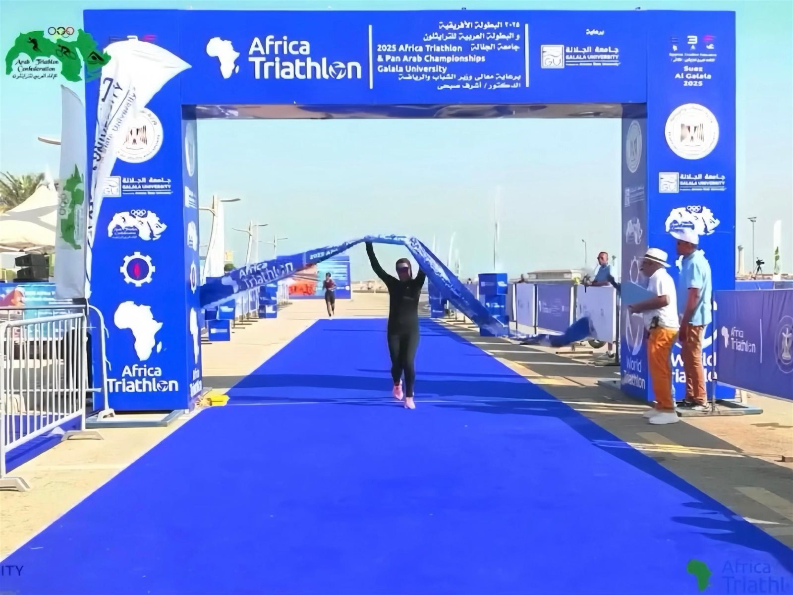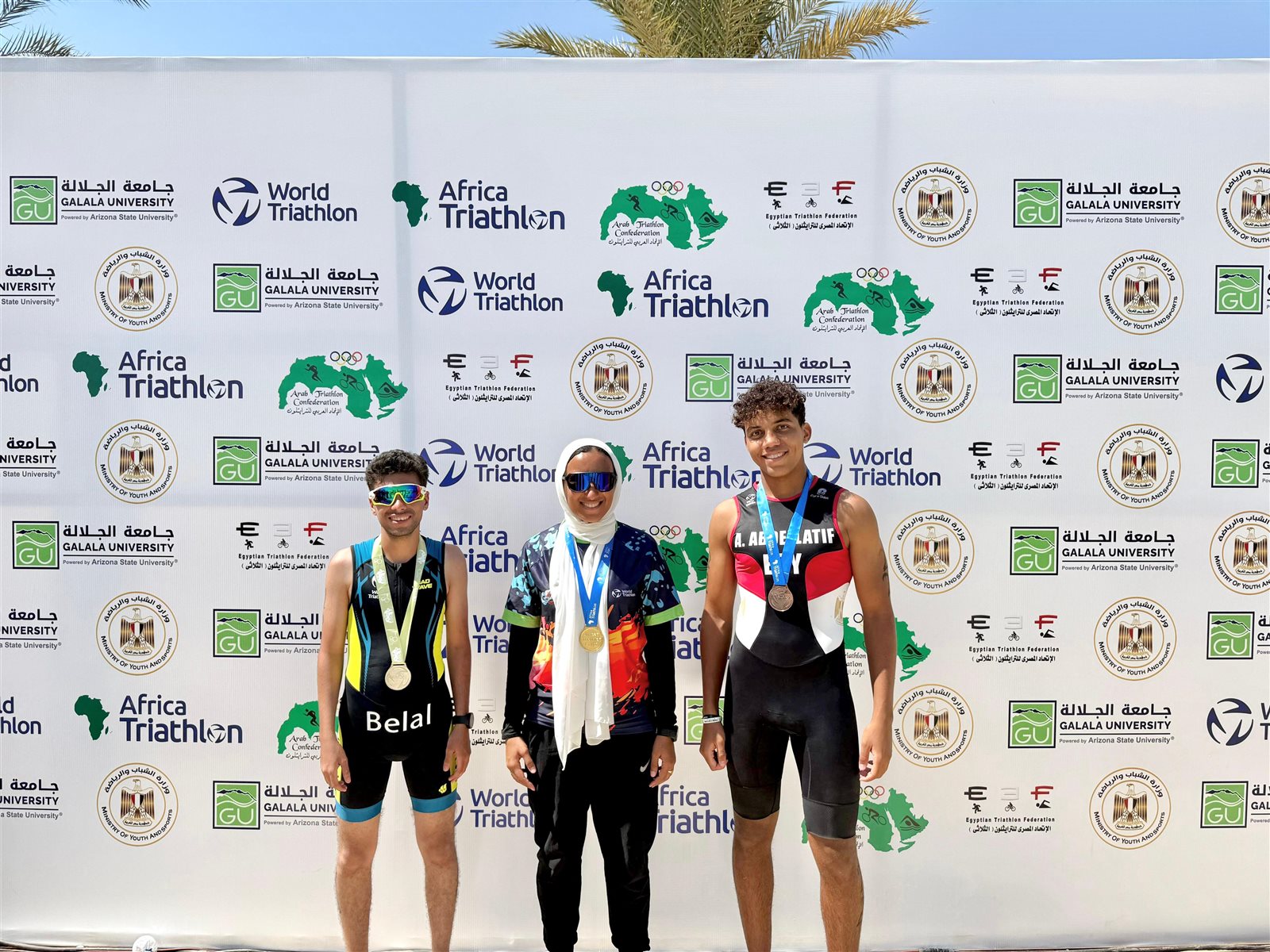 وقد أحرز أبطال جامعة الجلالة مراكز متقدمة وميداليات قارية وعربية مشرفة، وهم: الطالب بلال محمد أحمد صبحي كلية الطب، مرحلة U23 – فئة Sprint Duathlon، حقق المركز الثاني عربيًا، والطالب عمر محمد إسماعيل إسماعيل (Omar Ahmed) كلية الطب البشري، حقق المركز الأول على مستوى أفريقيا والأول على مستوى الوطن العربي، والطالبة فاطمة أحمد حسن محمد طالبة بالفرقة الثالثة بكلية طب الأسنان، حققت المركز الأول في فئة 20–24 Age Group، والأول على مستوى السيدات (Overall Sprint Duathlon Woman – Africa)، الطالب علي عبداللطيف علي بخيت طالب بالفرقة الثانية، برنامج تكنولوجيا تركيبات الأسنان، مرحلة U23 فئة Standard Aquathlon، حقق المركز الثالث على مستوى أفريقيا في مرحلته.