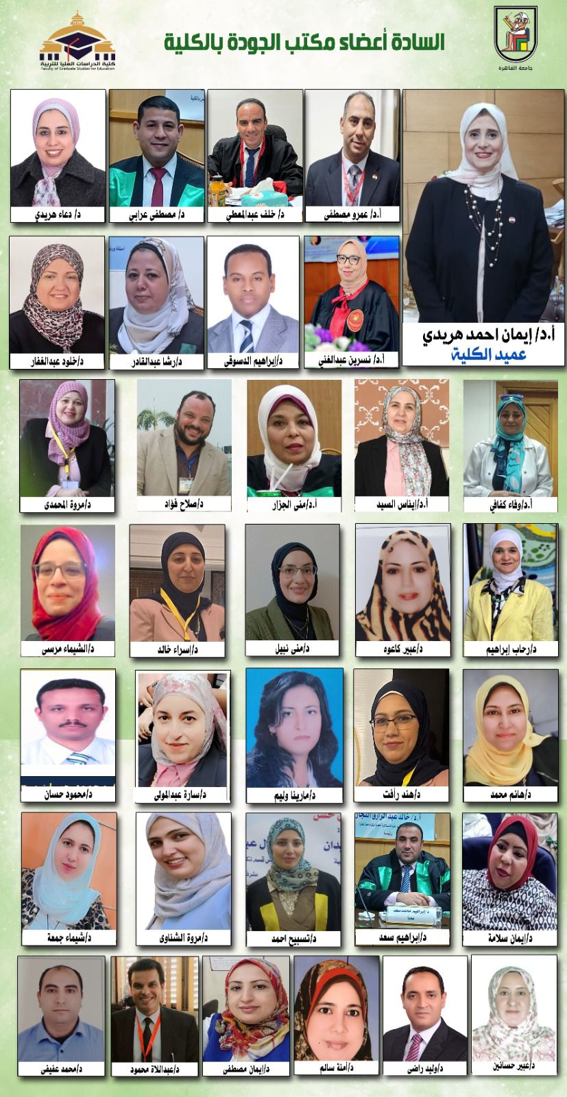جدير بالذكر أن فريق وحدة الجودة بكلية الدراسات العليا للتربية جامعة القاهرة، يضم الزملاء الآتي أسماؤهم: