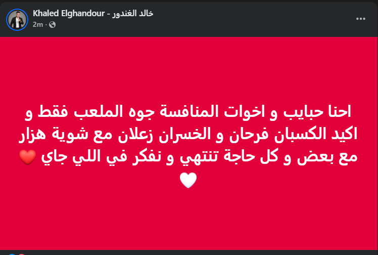 وجه الإعلامي خالد الغندور، رسالة لـ جماهير الأهلي والزمالك قبل ساعات من انطلاق مباراة القمة، التي من المقرر إقامتها في تمام الساعة الثامنة مساءً، ضمن منافسات الجولة التاسعة من بطولة الدوري المصري الممتاز.