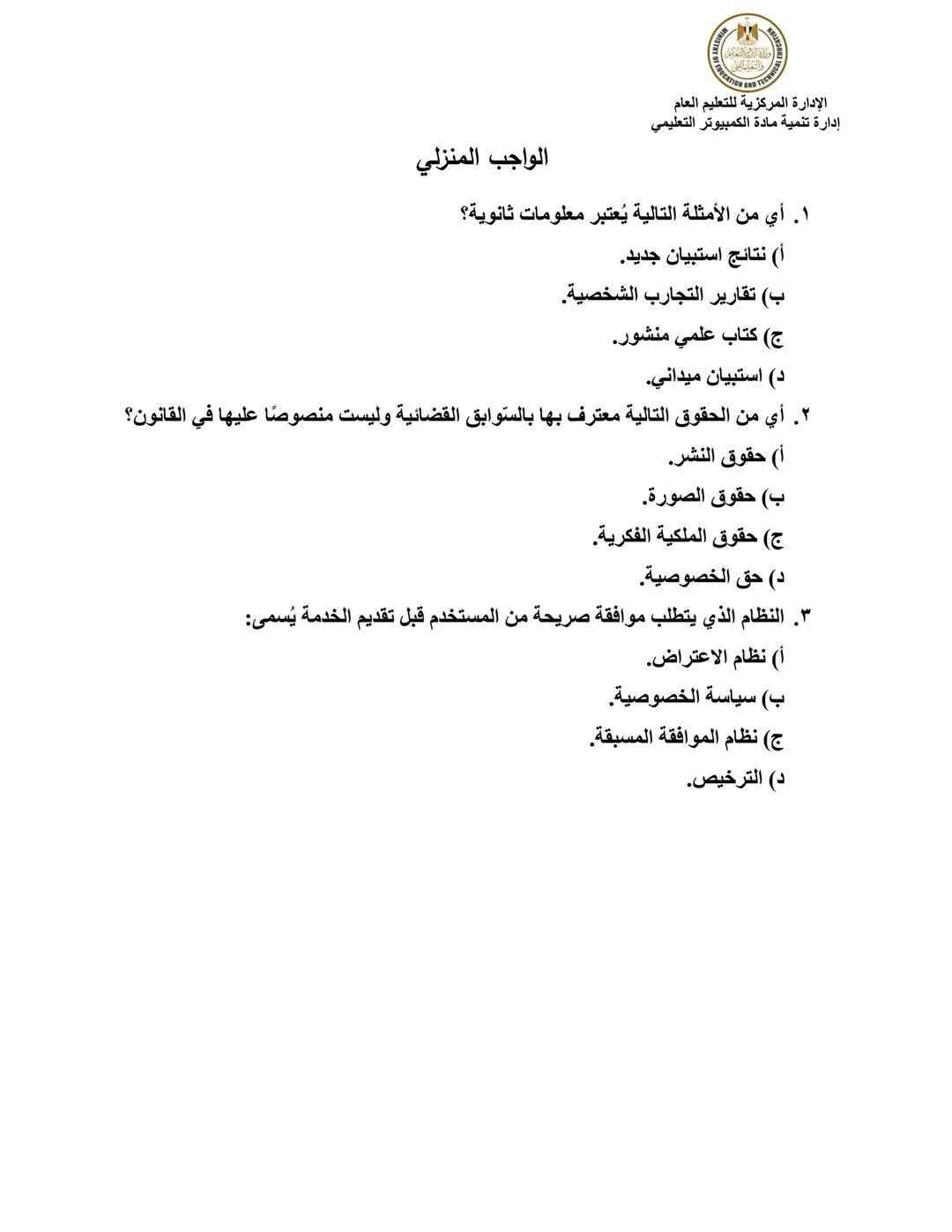 تقييمات الاسبوع الاول والواجب المنزلى لمادة البرمجه والذكاء الاصطناعي للصف الاول الثانوي