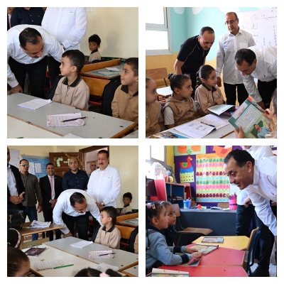رئيس الوزراء يداعب تلاميذ مدرسة سامح طاحون الابتدائية