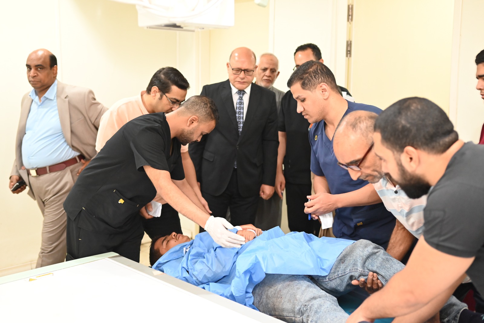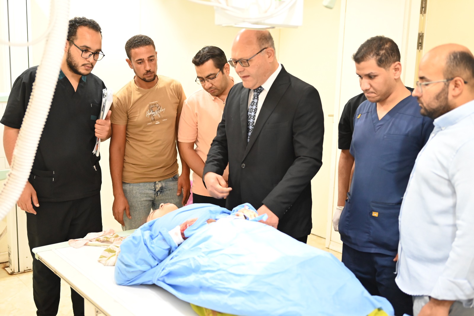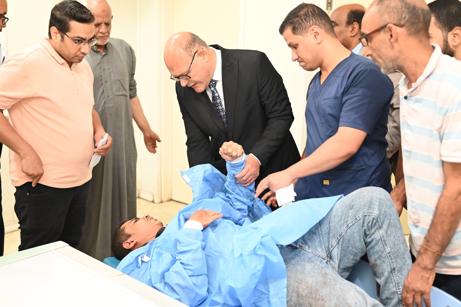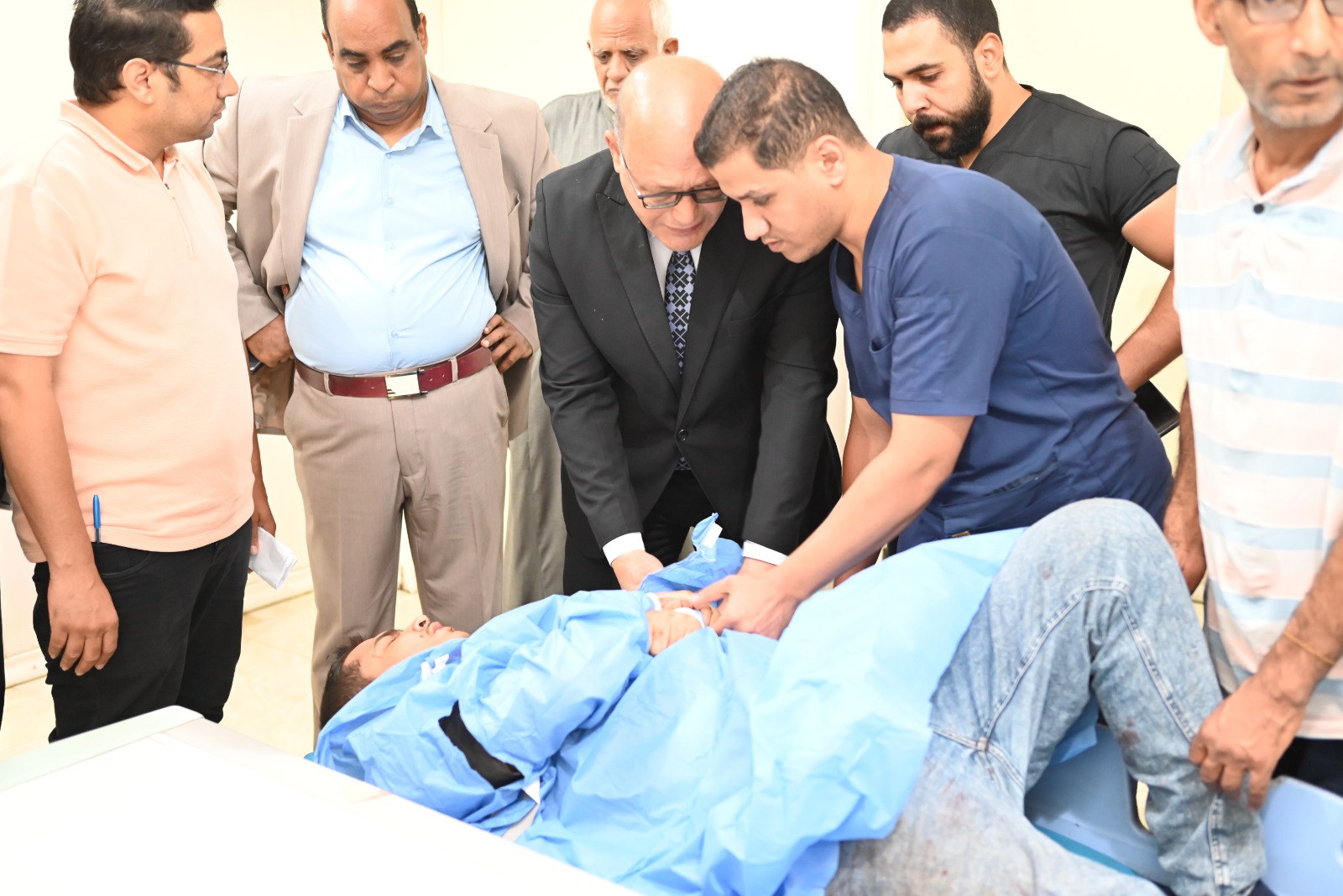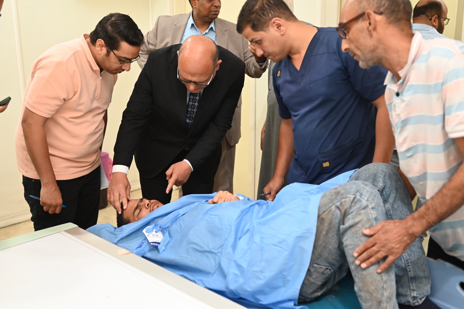 رئيس جامعة سوهاج يُطمئن أهالي الطلاب المصابين من داخل مستشفى الطوارئ الجامعي الجديد