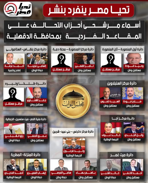 تحيا مصر ينشر مرشحو  التحالف”فردى” لانتخابات مجلس النواب 2025 بمحافظة الدقهلية