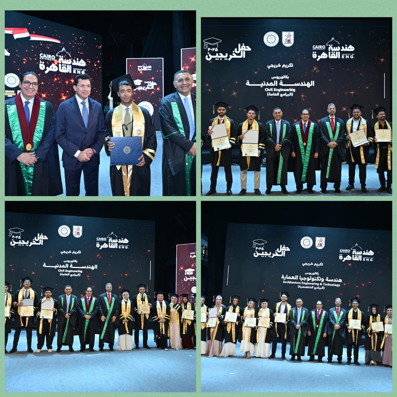 شهدت قاعة الاحتفالات الكبري بجامعة القاهرة تحت رعاية وحضور الدكتور محمد سامي عبدالصادق رئيس الجامعة، حفل خريجي كلية الهندسة دفعة 2025، وتكريم الرودا من دفعة 1975، بحضور الدكتور أشرف صبحي وزير الشباب والرياضة، والدكتور فاروق إسماعيل رئيس جامعة القاهرة الأسبق، والدكتور محمد العطار نائب رئيس جامعة القاهرة الأهلية للشئون الأكاديمية، والدكتور حسام عبدالفتاح عميد كلية الهندسة، والدكتور عادل عبدالغفار المستشار الإعلامي والمتحدث الرسمي لوزارة التعليم العالي والبحث العلمي، والمهندس محمد مجدي الحسيني نائبًا عن نقيب المهندسين، ووكلاء الكلية، وأعضاء هيئة التدريس، والخريجين وأسرهم.