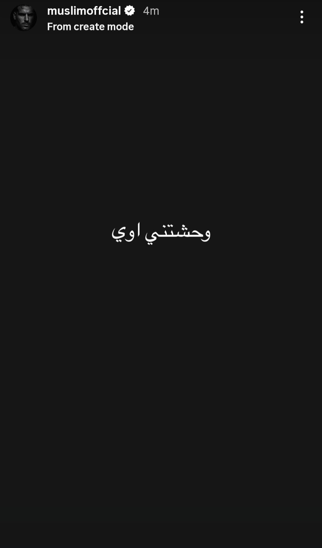 أثار الفنان مسلم حالة من الجدل بين متابعيه عبر مواقع التواصل الاجتماعي بعد أن نشر عبر خاصية “الستوري” على حسابه الرسمي بموقع إنستجرام صورة سوداء كتب عليها عبارة: وحشتني أوي.