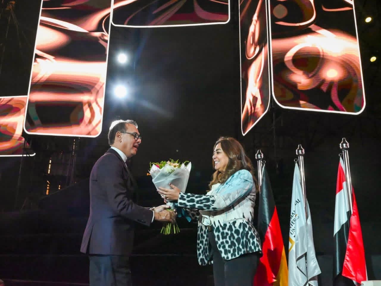 كما شهد الحفل استعراض طابور الخريجين وحفل فني لبعض الشباب الموهوبين من خريجي الجامعة الألمانية الدولية.