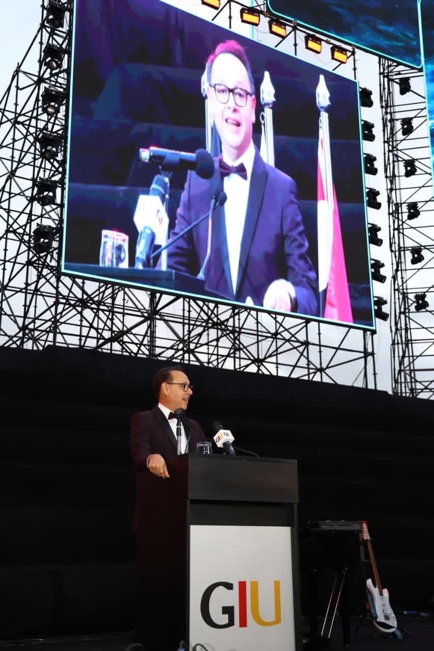 جاء ذلك بحضور كل من الدكتور أشرف منصور رئيس مجلس أمناء الجامعة الألمانية بالقاهرة، والدكتور ياسر حجازي رئيس الجامعة الألمانية بالقاهرة، والدكتور سليم عبد الناظر رئيس الجامعة الألمانية الدولية، والسيد بوليوس جورج لوى رئيس مجلس أمناء الجامعة الألمانية الدولية، وعمداء الكليات وأعضاء هيئة التدريس وأولياء أمور الطلاب وعدد من الصحفيين والإعلاميين.