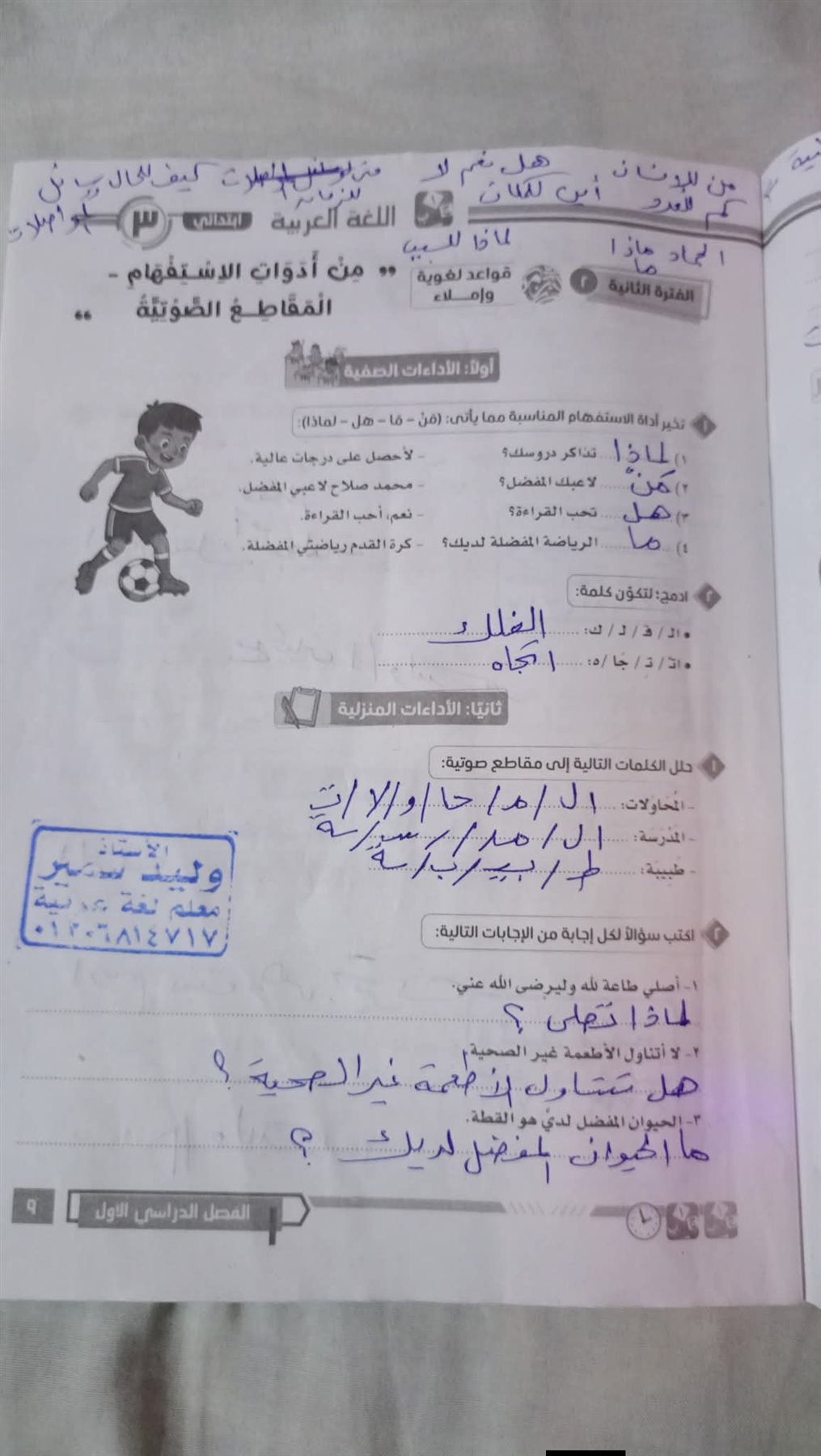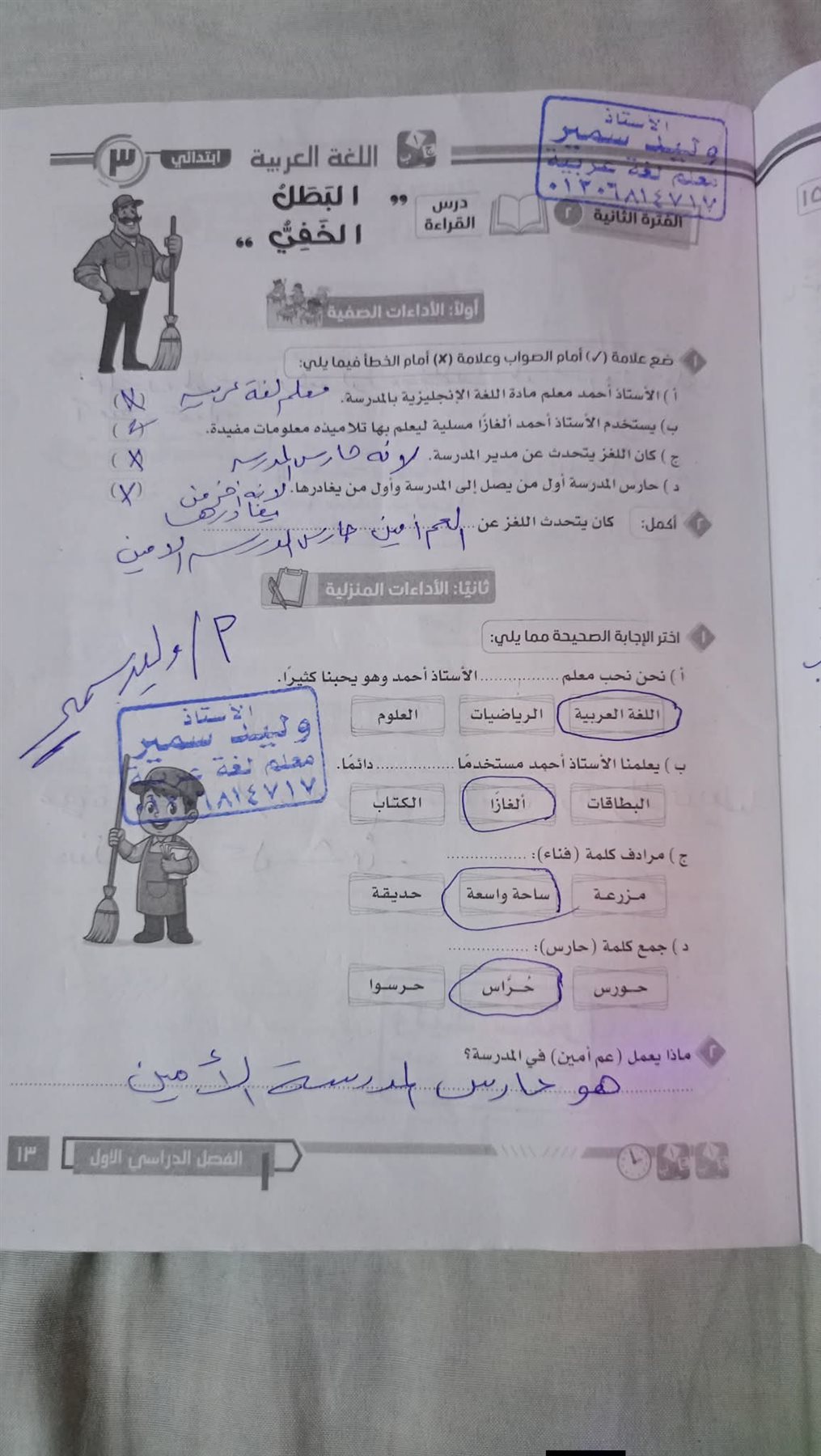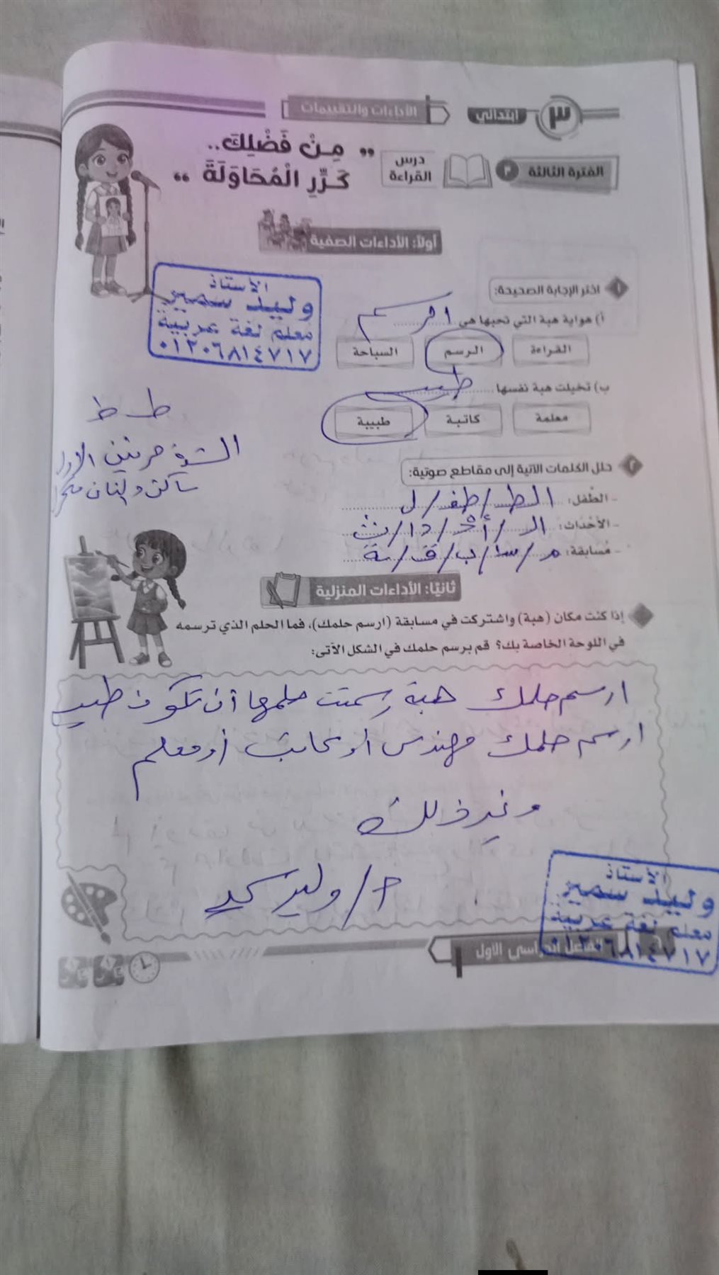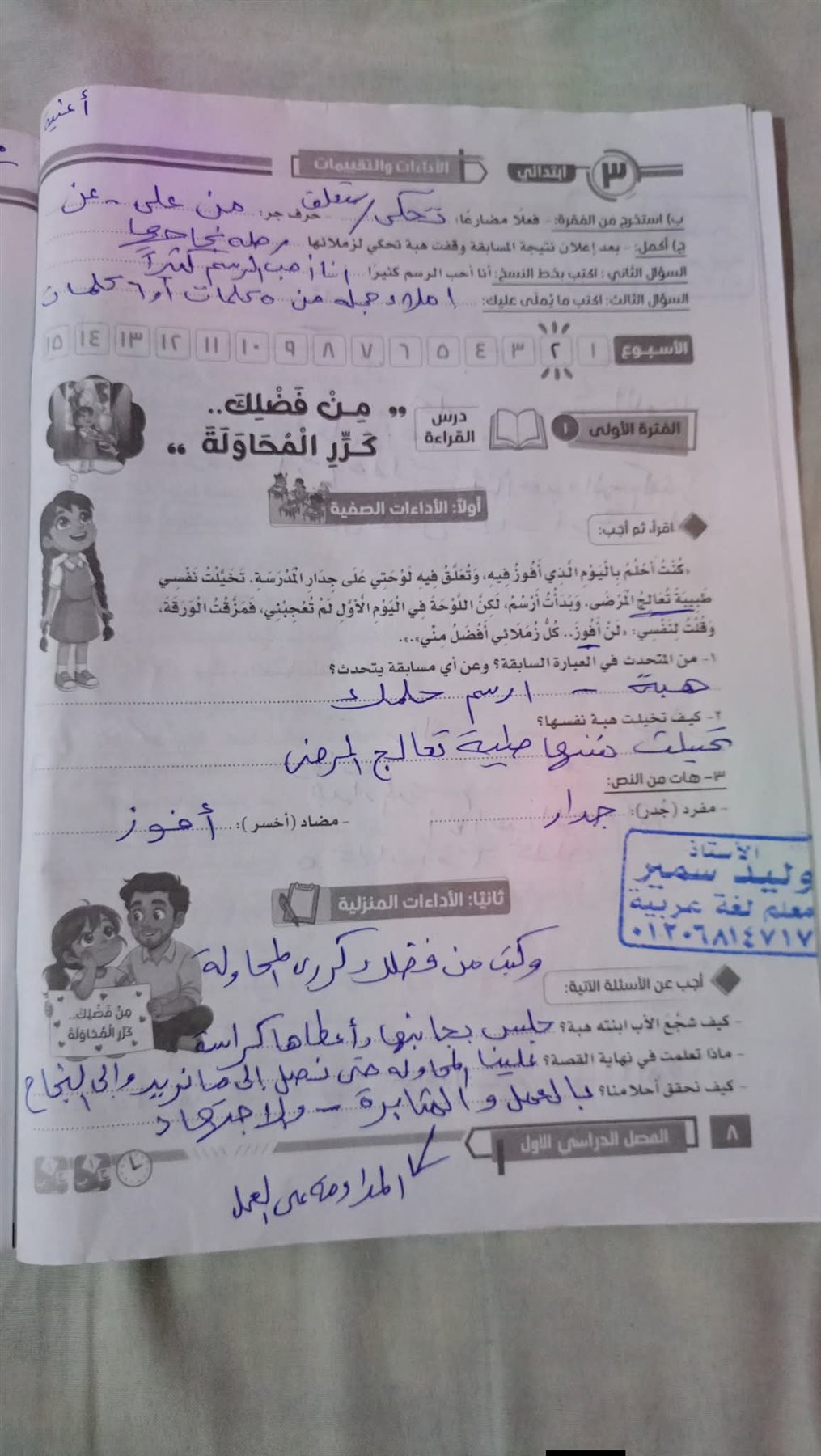 نشر أحد المعلمين، حل تقييمات مادة اللغة العربية لـ طلاب الصف الثالث الابتدائي الترم الأول 2026، بكتيب التقييمات، التي وزعتها وزارة التربية والتعليم والتعليم الفني بقيادة محمد عبداللطيف على الطلاب لأول مرة بالعام الدراسي الجاري 2025/2026.