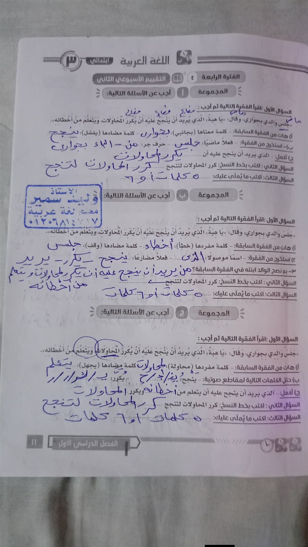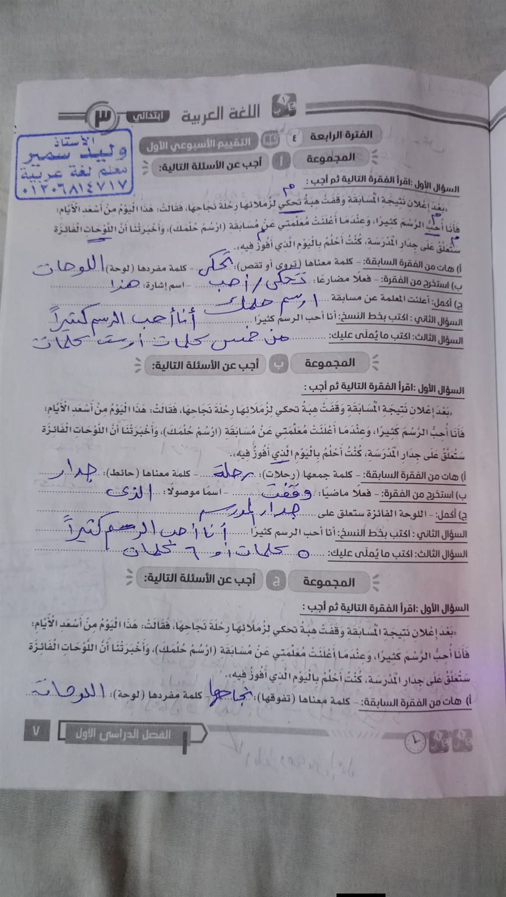 ويمكن الحصول على حل تقييمات مادة اللغة العربية لتلاميذ الصف الثالث الابتدائي الترم الأول للعام 2025/2026 من خلال متابعة الصور التالية: