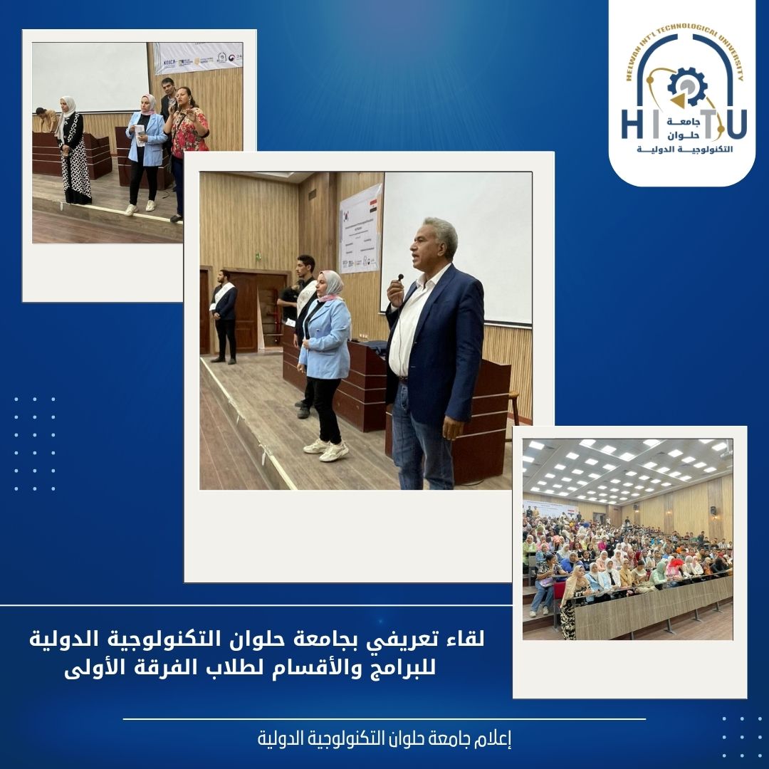نظّمت جامعة حلوان التكنولوجية الدولية لقاءً تعريفيًا ببرامج وأقسام الكلية التكنولوجية لطلاب الفرقة الأولى، في إطار حرص الجامعة على تعزيز التواصل بين الطلاب وهيئة التدريس، وتعريفهم بالتخصصات الحديثة وفرص العمل المستقبلية التي توفرها البرامج الأكاديمية التكنولوجية المعتمدة بالجامعة، وذلك تحت رعاية الدكتور السيد قنديل رئيس جامعة حلوان التكنولوجية الدولية، وإشراف الدكتور أحمد البنداري المشرف الأكاديمي للجامعة، والدكتور أسامة القبيصي عميد الكلية التكنولوجية، والدكتور حلمي الزغبي وكيل الكلية.