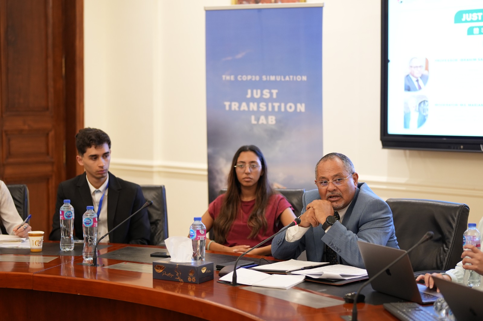 وشهدت الجلسة محاكاة تفاعلية تناولت مختلف العوامل المؤثرة في مسار الانتقال العادل، بما في ذلك الاتفاقيات والمعاهدات الدولية، والنزاعات، والأمن المناخي، مؤكدة أن الانتقال العادل لا يُقصد به التغيير في حد ذاته، بل خلق بيئة أكثر استدامة وعدلًا وصحة للإنسان والمجتمعات.