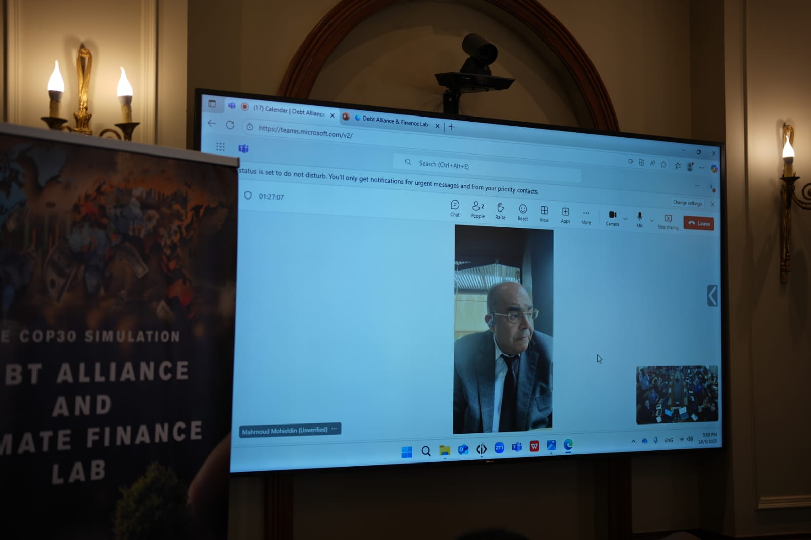وترأس الجلسة الدكتور محمود محيي الدين، المبعوث الخاص للأمم المتحدة لتمويل أجندة التنمية المستدامة 2030، والرئيس المشارك لفريق الخبراء رفيع المستوى المكلَّف من الأمين العام للأمم المتحدة بتقديم حلول للتعامل مع أزمة الديون، والرئيس الشرفي لبرنامج محاكاة قمة المناخ.
