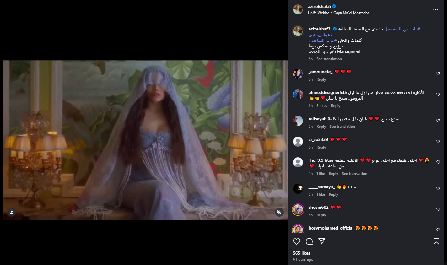 كشف الملحن عزيز الشافعي، عن تعاونه مع الفنانة هيفاء وهبي في أغنيتها الجديدة الذي تحمل عنوان جاية من المستقبل، والتي تم طرحها الأيام الماضية عبر قناتها الرسمية على موقع التواصل الاجتماعي يوتيوب، والتي تخطت المليون مشاهدة.