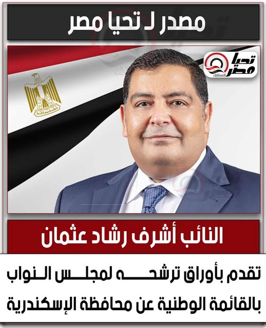 النائب أشرف رشاد عثمان تقدم بأوراق ترشحه لمجلس النواب بالقائمة الوطنية عن محافظة الأسكندرية