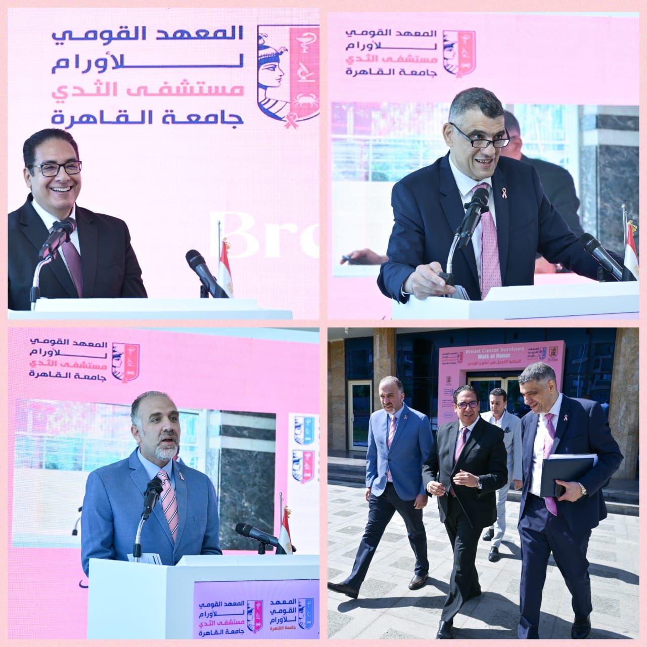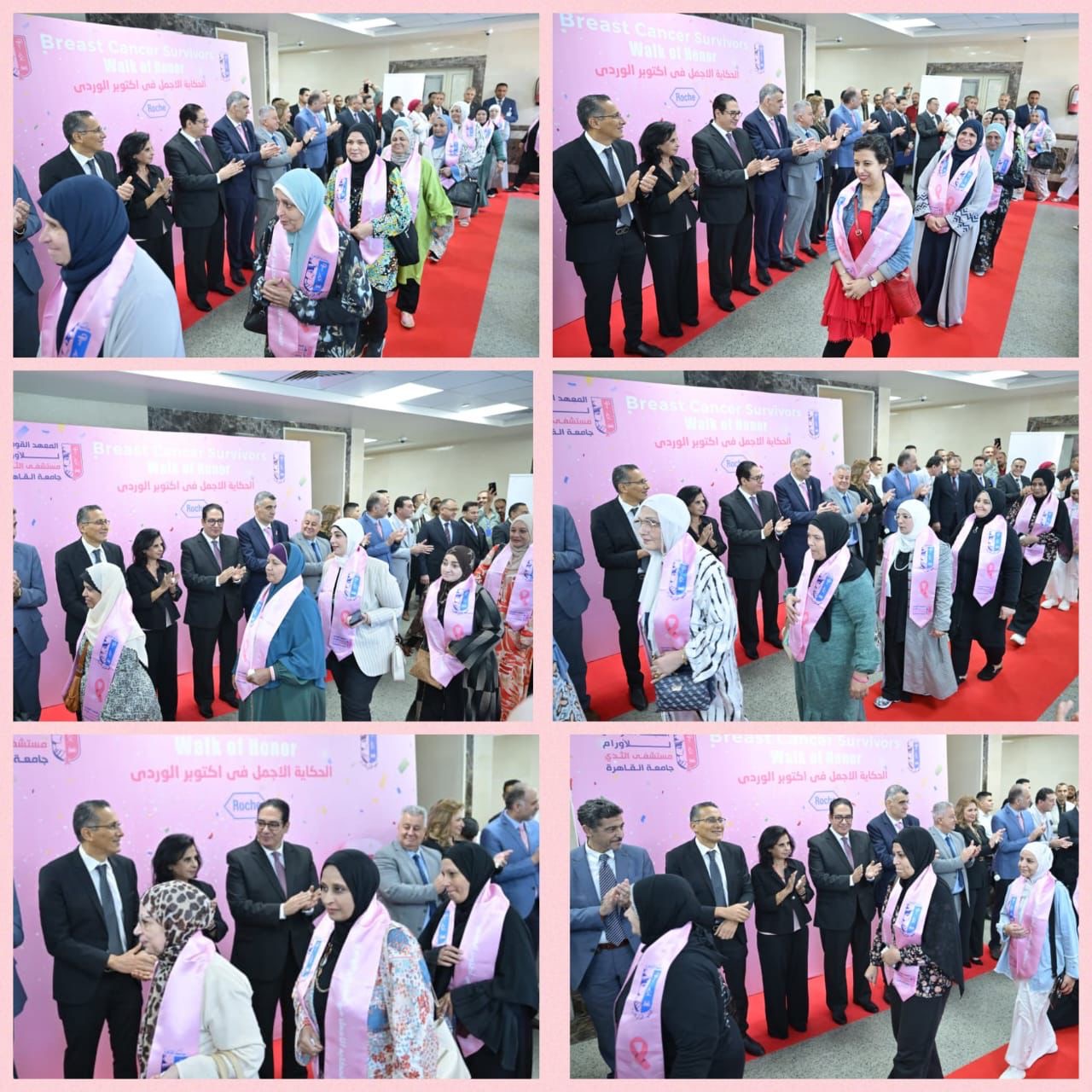 شهد الدكتور محمد سامي عبدالصادق، رئيس جامعة القاهرة، أمس الخميس، فعاليات الاحتفالية التي نظمها مستشفى الثدي بالتجمع الأول التابع للمعهد القومي للأورام، لتكريم عدد من السيدات المتعافيات من سرطان الثدي، كما شهد الممر الشرفي الذي نظمه المستشفى لهن، وذلك تزامنًا مع شهر أكتوبر الوردي، شهر التوعية بسرطان الثدي، الذي يهدف إلى نشر الوعي بأهمية الاكتشاف المبكر، وتشجيع الفحص الدوري، وتقديم الدعم النفسي والمعنوي للمصابات والمتعافيات.