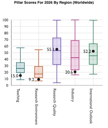يُذكر أن تصنيف التايمز العالمي (THE World University Rankings) يُعد من أكثر التصنيفات الدولية دقة وشفافية في تقييم أداء الجامعات، حيث يعتمد على خمسة محاور رئيسية هي: التدريس (30%)، البيئة البحثية (29%)، جودة البحث (30%)، النظرة الدولية (7.5%)، والصناعة (2.5%)، ويشمل آلاف الجامعات في أكثر من 100 دولة حول العالم، استنادًا إلى 18 مؤشرًا للأداء الأكاديمي والبحثي ونقل المعرفة.