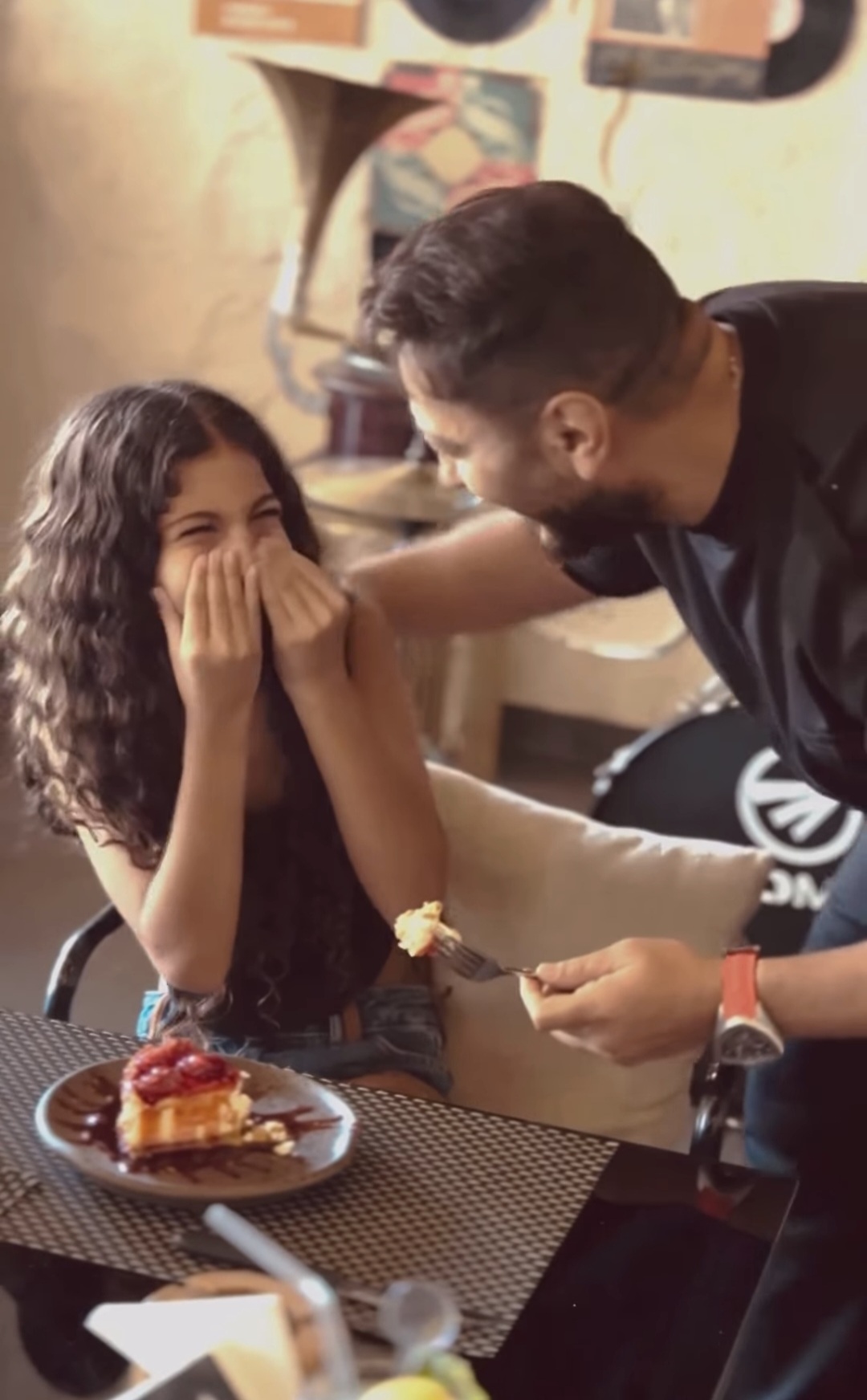 وظهر “تامر” في الفيديو وهو يدخل المطعم ليباغت الطفلة بابتسامة دافئة، لتنهار من الفرحة وتحتضنه في مشهد مؤثر.