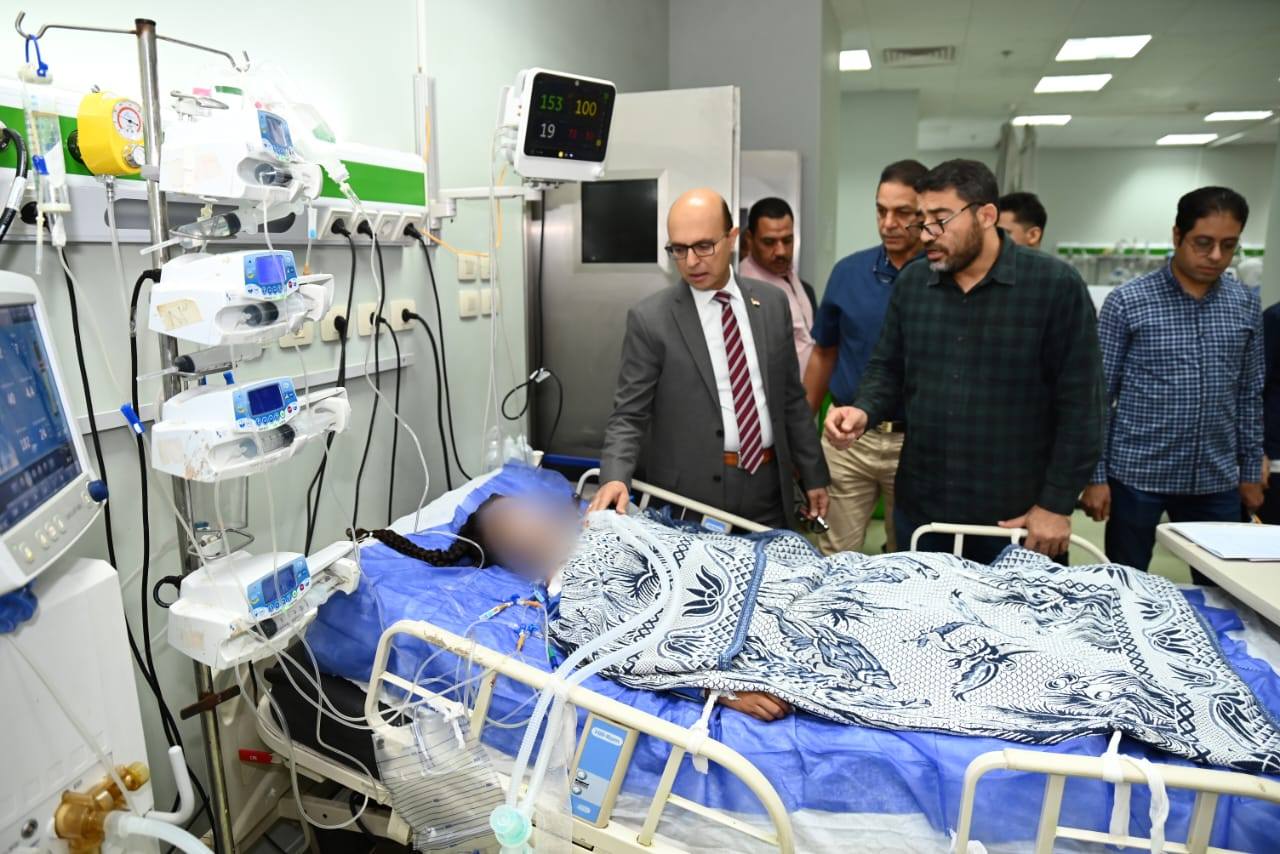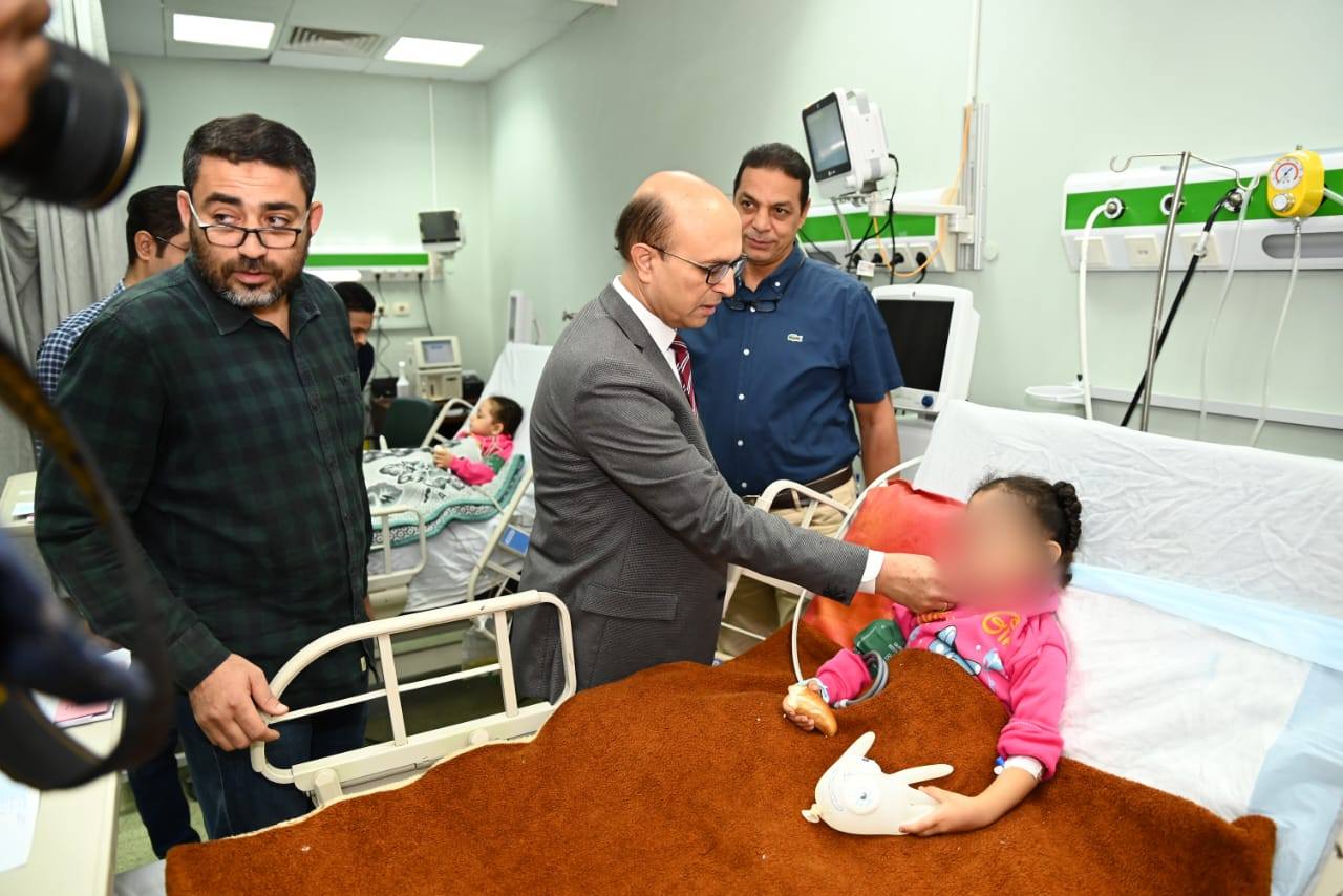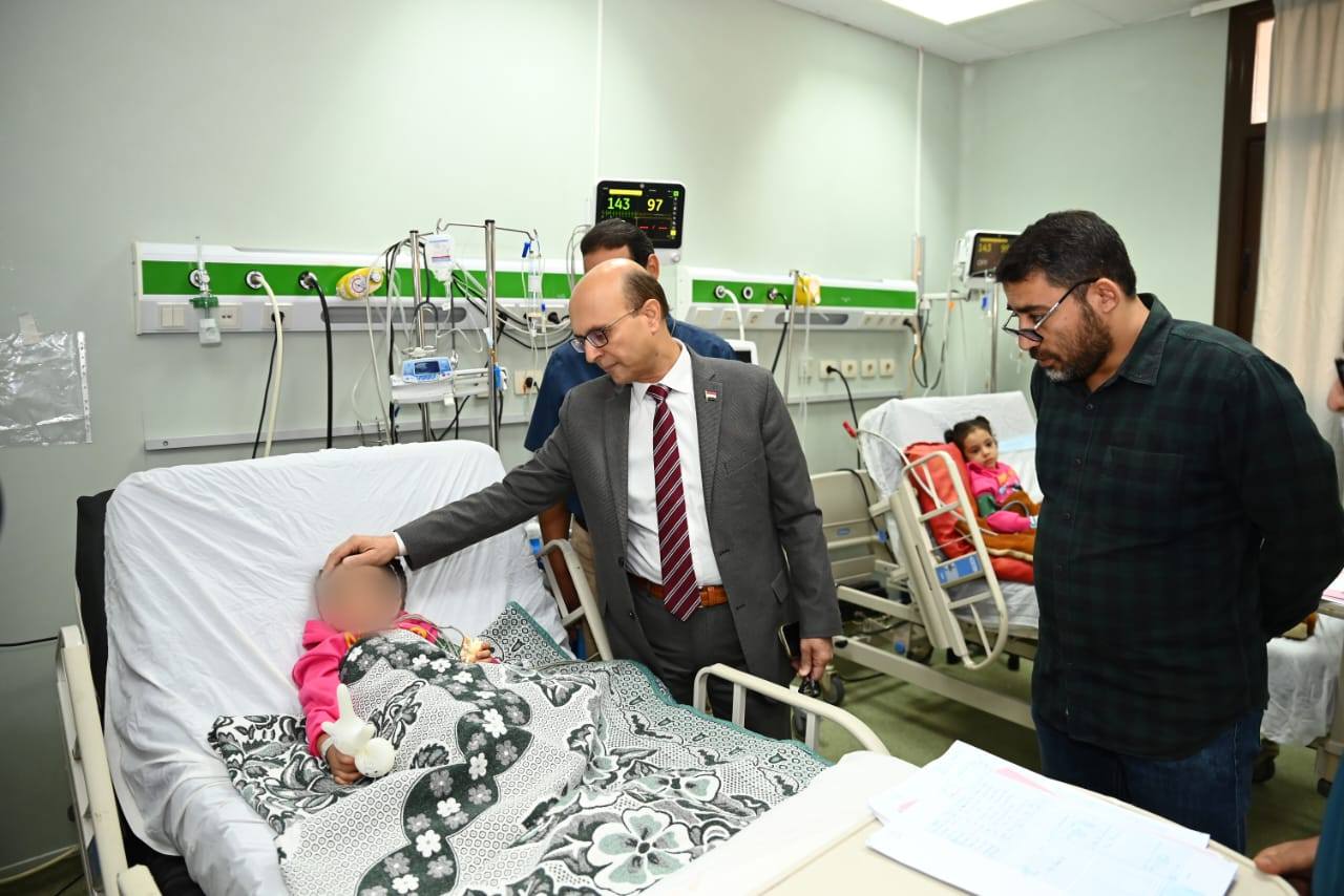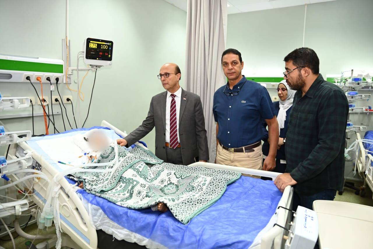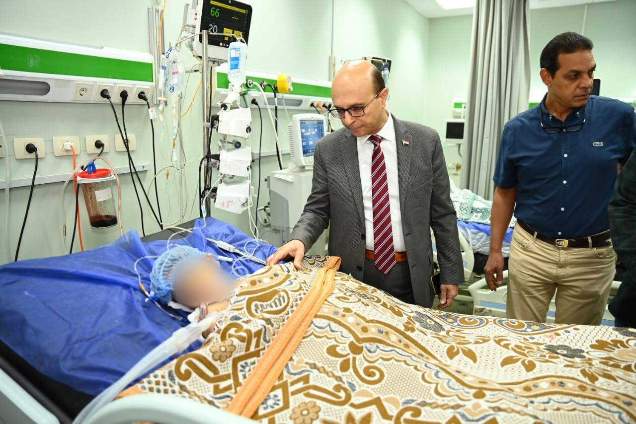 رئيس جامعة أسيوط يتفقد الحالة الصحية للأطفال المصابين في حادث قرية منقباد بمستشفى الإصابات