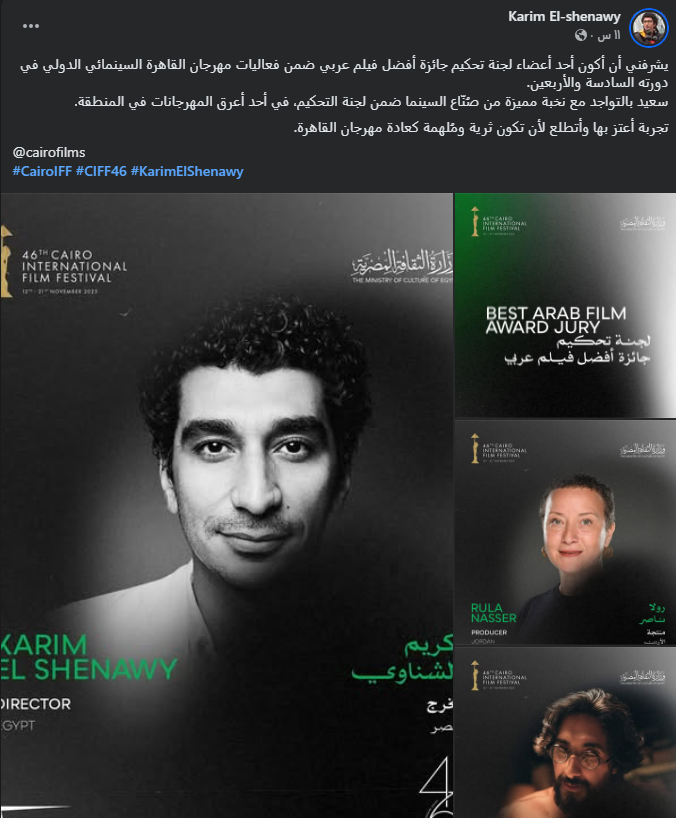 تعليق كريم الشناوي على اختياره في لجنه تحكيم مهرجان القاهرة السينمائي