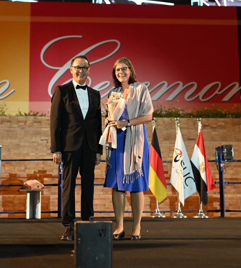 واختتمت كلمتها بتوجيه رسالة نصح وحب للخريجين “أنتم اليوم خريجوالجامعة الالمانية سفراء للتفاهم بين الثقافات، أراكم قادة المستقبل وباحثين ومبتكرين قادرين على الربط بين مصر وألمانيا، وبين العلوم والمجتمعات، قادرين على مواجهه القضايا المحلية والسعي لايجاد الحلول العالمية، وبالنيابة عن الهيئة الألمانية للتبادل العلمي، أتمنى لكم كل التوفيق في مساعيكم المقبلة، وأن تواصلوا دائمًا بناء الجسور واستخدام معارفكم لإحداث الأثر الإيجابي في حياة الآخرين، فاليوم نحتفل بنهاية مرحلة وبداية مستقبل واعد.