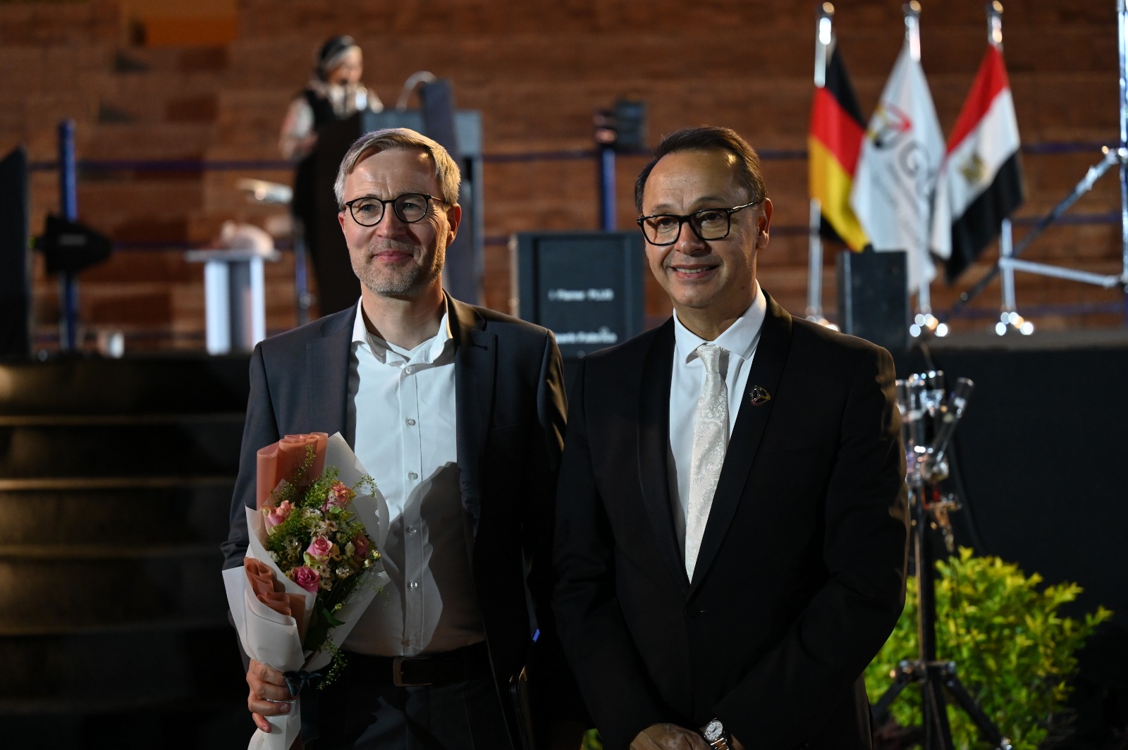 أكد يورجن شولتس، سفير جمهورية ألمانيا الاتحادية بالقاهرة، بأن الجامعة الألمانية بالقاهرة تُعد نموذجًا رائدًا وناجحًا لهذا التعاون الوثيق بين البلدين، الذي يثمر بشكل مستمر نتائج قيّمة تمتد آثارها الإيجابية لتخدم مصر وألمانيا والعالم أجمع، معربًا عن شكره وتقديره للدكتور أشرف منصور مؤسس الجامعة، على رؤيته الطموحة التي أصبحت واقع ملموس يلهم الاجيال القادمة من الطلاب والباحثين والمهنيين، ومؤكدًا أن مشاركته في هذا الحدث تعكس عمق الشراكة الحيوية التي تجمع بين مصر وألمانيا في مجالات التعليم والعلوم والبحث العلمي.
