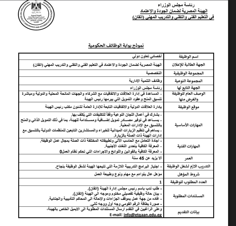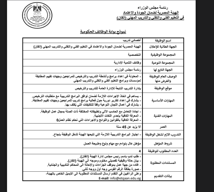 المستندات المطلوبة في وظائف الهيئة المصرية لضمان جودة التعليم الفني