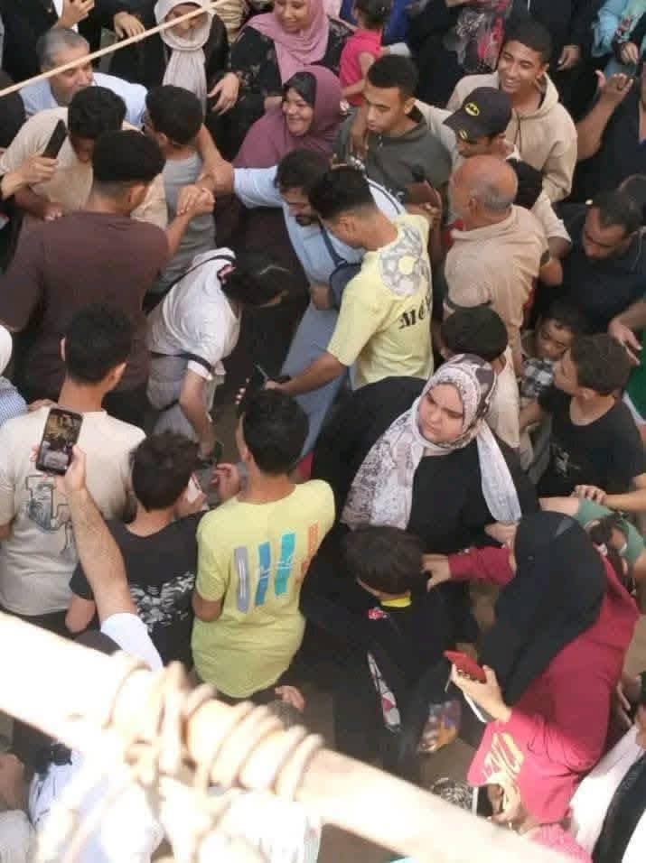 الأهالي يلتفون حول تامر حسني أثناء زيارته طفلة مصابة بالسرطان في شبين القناطر