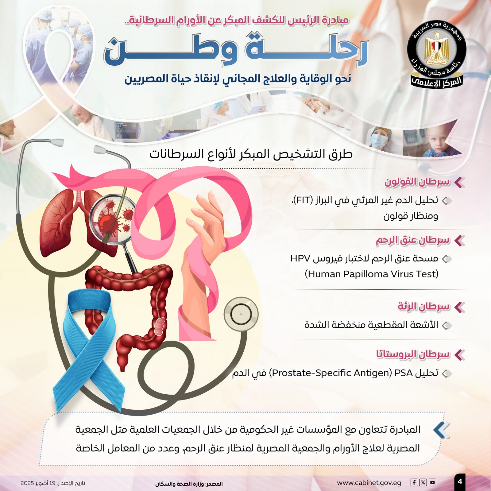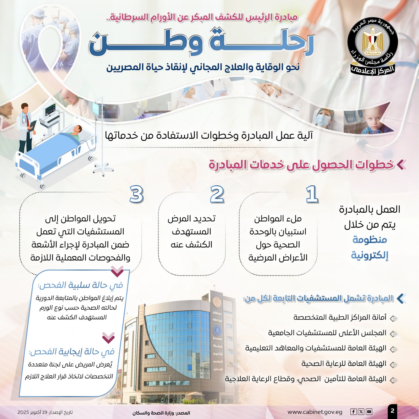 إن المبادرة الرئاسية للكشف المبكر عن الأورام السرطانية تمثل خطوة غير مسبوقة في تاريخ الرعاية الصحية بمصر، حيث تجمع بين الوقاية والتشخيص والعلاج المجاني، في إطار متكامل يراعي البعد الإنساني والاجتماعي والصحي.
