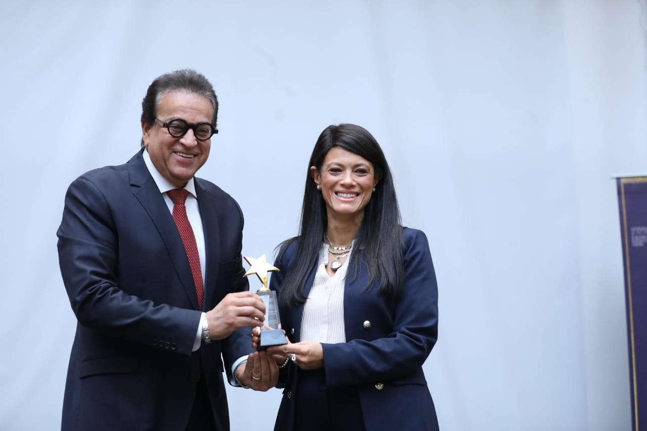 وفي ختام الفعالية، أهدت الدكتورة رانيا المشاط “درع التميز” إلى الدكتور خالد عبدالغفار، تكريمًا لجهوده في دعم مسيرة التميز المؤسسي داخل القطاع الصحي المصري.