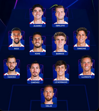 وعلى الجانب الآخر أعلن ديوجو سيميوني مدرب أتلتيكو مدريد عن تشكيل فريقه الرسمي، ويبحث عن الانتصار خارج ملعبه.