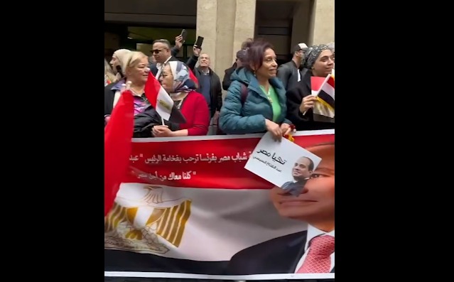 جاء ذلك وسط احتشاد العشرات من أبناء الجاليات المصرية في أوروبا، أمام مقر إقامة الرئيس للترحيب بوصوله للمشاركة في القمة المصرية الأوروبية.