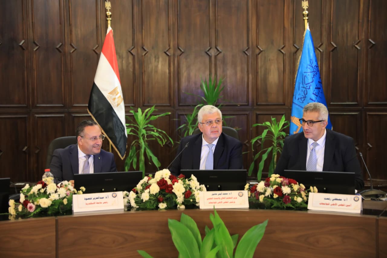 وقدم المجلس الشكر لأسرة جامعة الإسكندرية، برئاسة الدكتور عبدالعزيز قنصوة، رئيس الجامعة، على استضافة اجتماع المجلس الأعلى للجامعات.