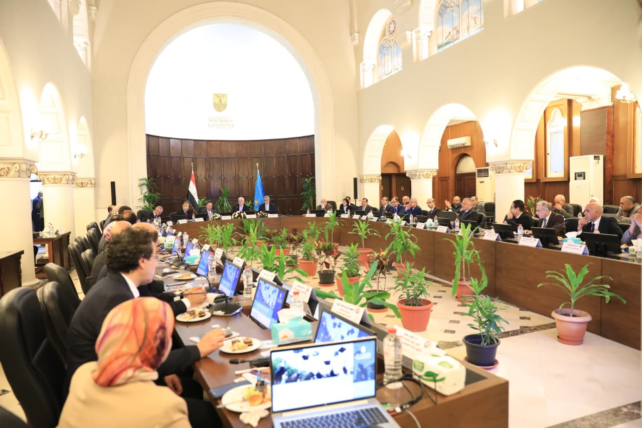 واستمع المجلس إلى عرض تفصيلي قدمه الدكتور عبدالعزيز قنصوة، رئيس جامعة الإسكندرية، حول جهود اللجنة المُشكلة لتحويل مصر إلى مركز إقليمي ودولي للتعليم والبحث العلمي والابتكار، يساهم في بناء اقتصاد المعرفة ويجذب الطلاب والباحثين من جميع أنحاء العالم، وذلك من خلال تشجيع الجامعات الحكومية على عقد شراكات لمنح درجات مزدوجة مع جامعات مرموقة، وتدويل الجامعات الحكومية وإنشاء أفرع لها خارج مصر وتصدير العلامة التجارية للتعليم المصري وإعادة تأسيس مكانته التاريخية، وزيادة أعداد الطلاب الوافدين المُلتحقين بالجامعات المصرية، وربط الأبحاث العلمية بالنشر العالمي واقتصاد المعرفة من خلال “أودية التكنولوجيا”، وربط البحث بالصناعة، وكذلك استعراض الخطوات التنفيذية لتنفيذ هذه المحاور.