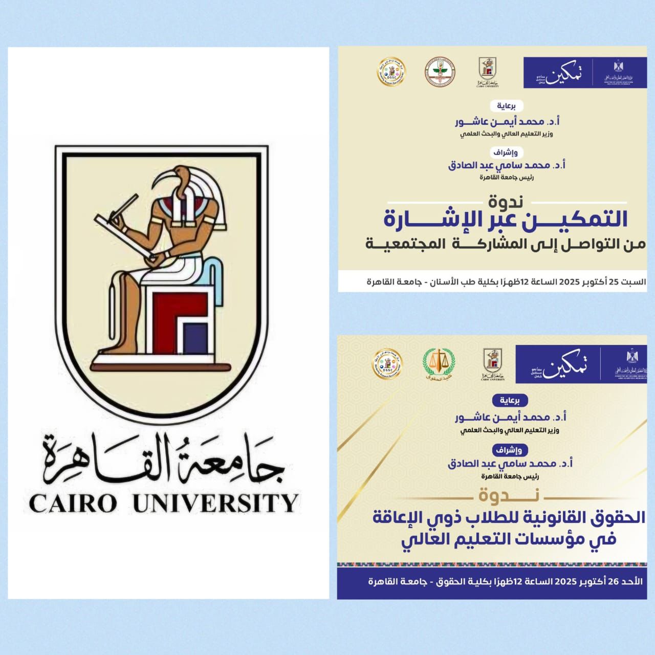 رئيس جامعة القاهرة: تنفيذًا لتوجيهات الرئيس عبدالفتاح السيسي تتبنى جامعة القاهرة رؤية شاملة لتمكين ذوي الهمم وتوفير بيئة جامعية دامجة تتيح لهم فرصًا متكافئة في التعليم والابتكار والمشاركة في الحياة الجامعية