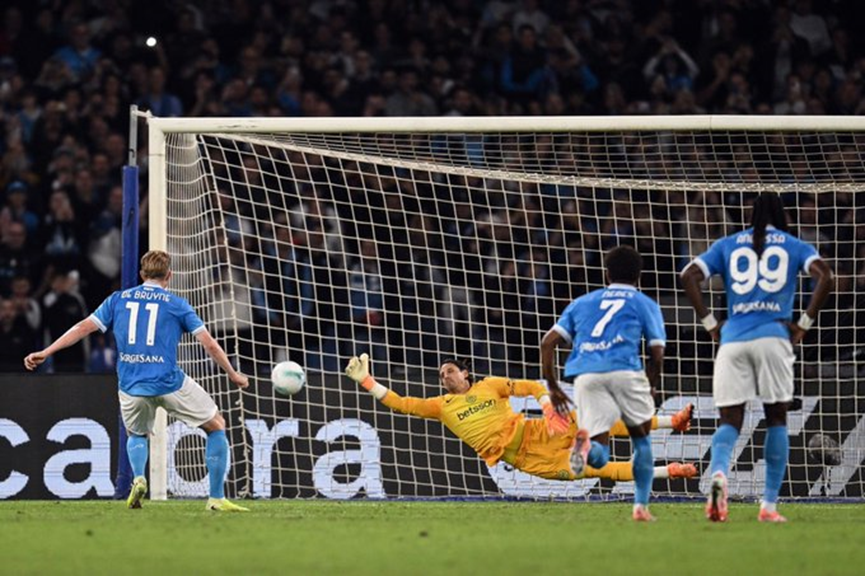 وحصل نابولي على ركلة حزاء في الدقيقة 33 من عمر المباراة وسجلها البلجيكي كيفين دي بروين بنجاح.