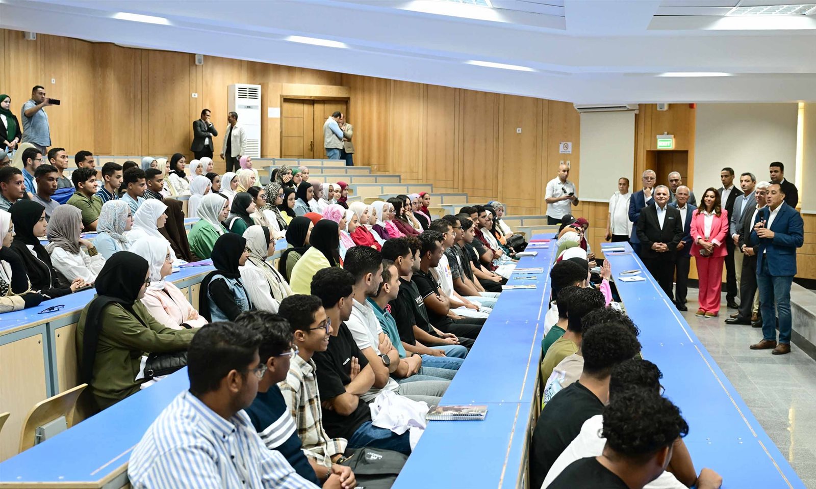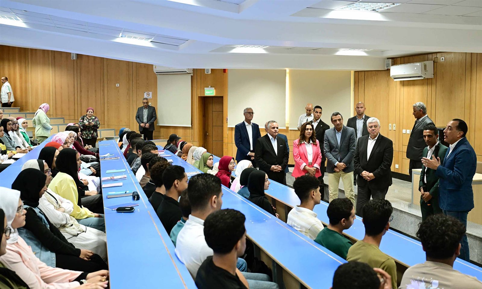 وخلال الجولة، تفقد رئيس مجلس الوزراء مدرج كلية العلوم؛ حيث تابع جانبًا من محاضرة في الجيولوجيا لطلاب الكلية؛ وأجرى رئيس مجلس الوزراء حوارا مع عدد كبير من الطلاب، معبرا عن سعادته بتواجده اليوم مع شباب مصر في أول عام دراسي بهذه الجامعة الناشئة، قائلا: أنتم المستقبل لأننا نعمل من أجل المستقبل، فهدف الدولة هو تخريج طلاب أكفاء يواكبون متطلبات المستقبل، وقادرون على التكيف مع أحدث التقنيات التكنولوجية في مختلف المجالات.