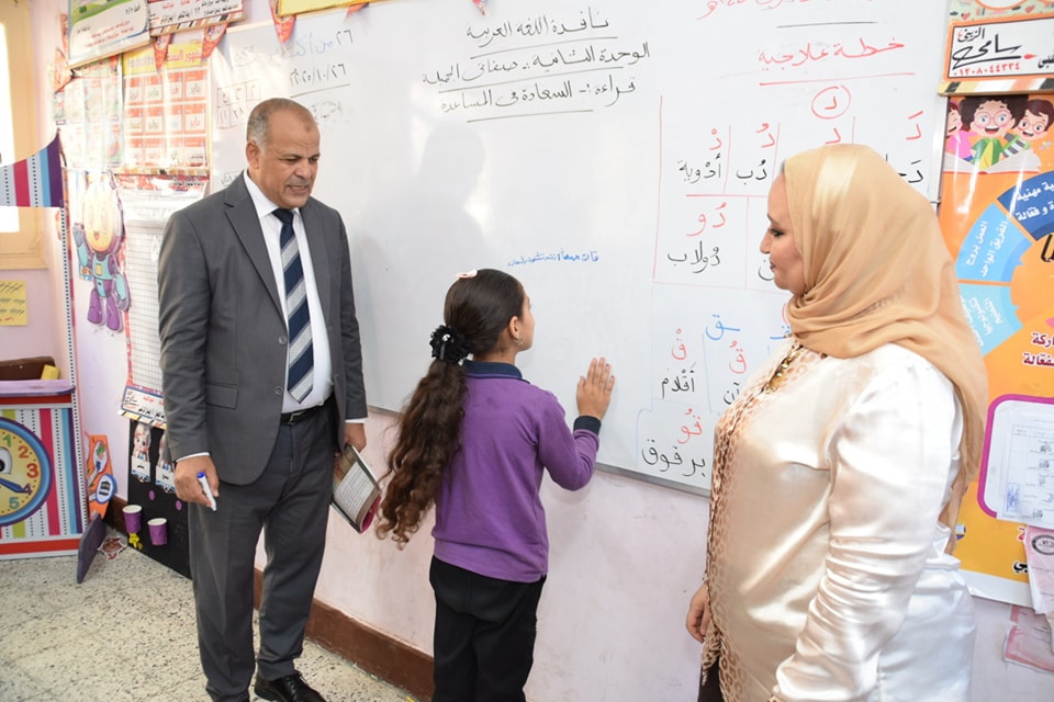 كما أثنى على مستوى الطلاب، بعد أن تبادل أطراف الحديث مع بعض تلاميذ الصف الرابع الابتدائي حول مادة اللغة الإنجليزية، وتأكد من استيعابهم لها، وأثنى أيضًا على الاهتمام بالمظهر العام والنظافة داخل المدرسة.