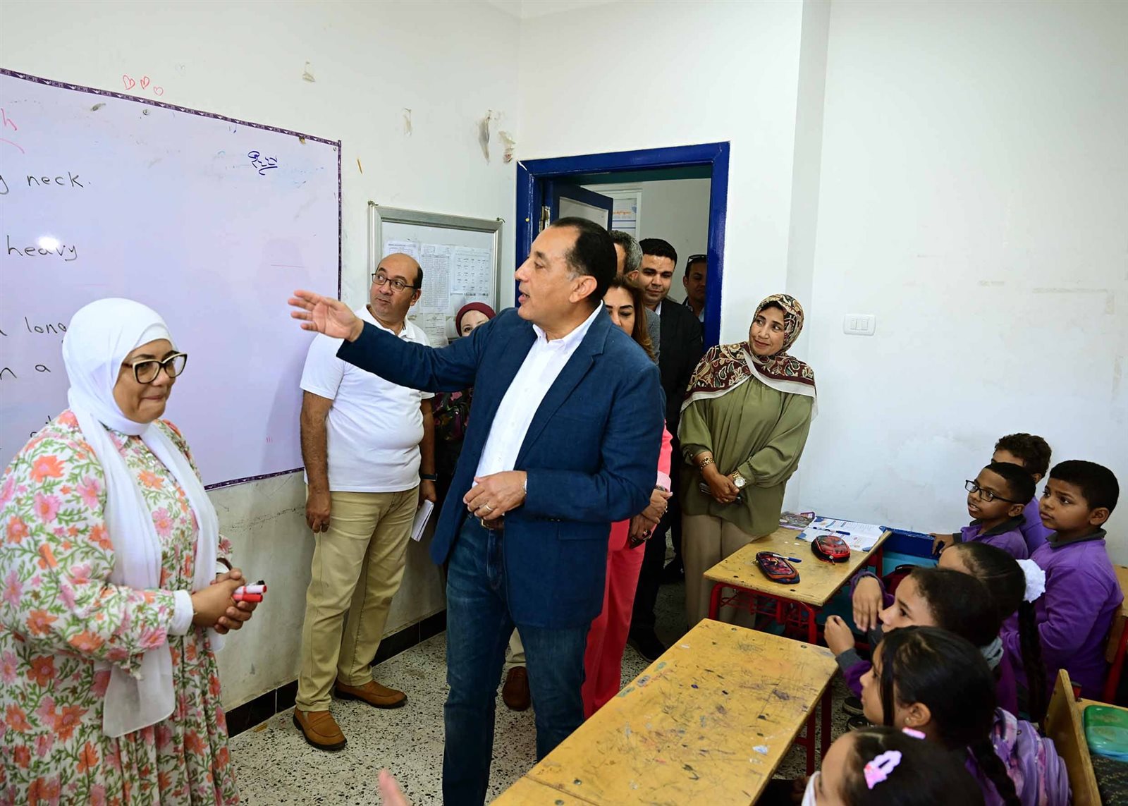 وقام الدكتور مصطفى مدبولي أيضًا بتفقد فصول المرحلة الابتدائية، واطمأن على كثافة الفصل، ونسبة الحضور، كما حرص على إجراء حوارات ودية مع الطلاب حول المواد التعليمية التي تُقدم لهم للتأكد من استيعابهم لها، كما تأكد من استلام هؤلاء الطلاب الكتب الدراسية.