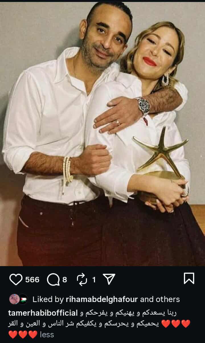 تامر حبيب يهنىء منة شلبي واحمد الجنايني بزواجهم