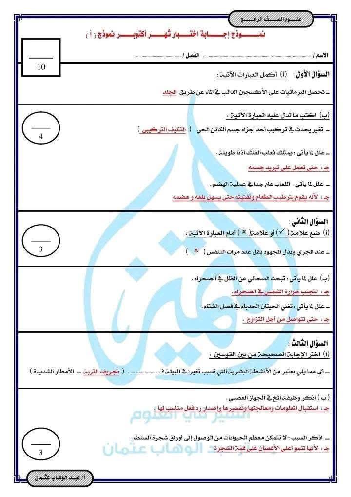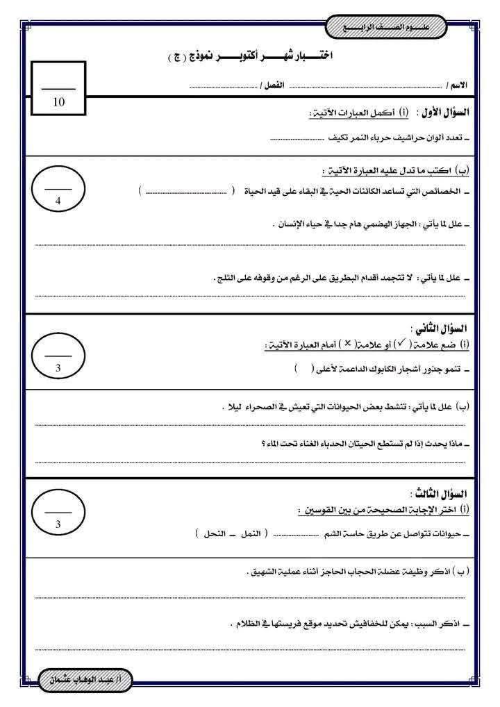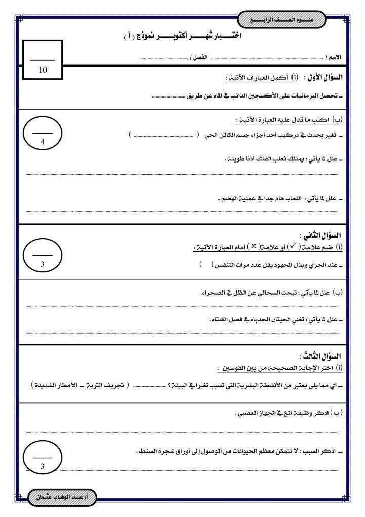 نماذج امتحانات شهر أكتوبر 2025 بمادة العلوم لـ الصف الرابع الابتدائي، ويمكن الحصول على نماذج امتحانات شهر أكتوبر 2025 بمادة العلوم لـ الصف الرابع الابتدائي من خلال مطالعة الصور التالية: