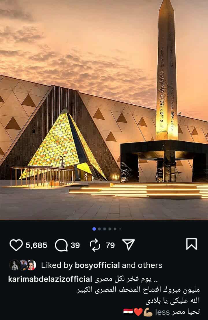 كريم عبد العزيز ووفاء عامر يوجهون رسائل خاصة تزامنا مع افتتاح المتحف المصري الكبير