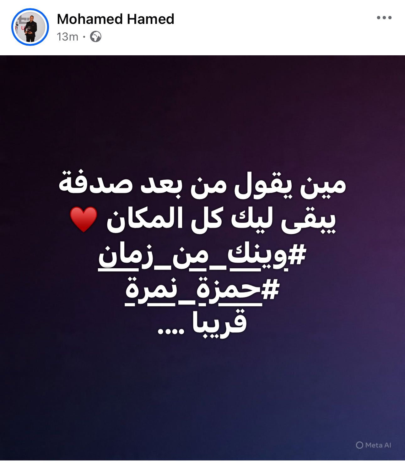 أعلن المنتج محمد حامد، تعاونه لأول مرة مع الفنان حمزة نمرة، في أغنية بعنوان وينك من زمان، من المقرر طرحها قريبًا عبر جميع منصات الاستماع بالوطن العربي.
