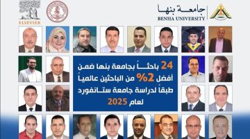 24 باحثًا بجامعة بنها ضمن أفضل 2% من الباحثين عالميا لعام 2025