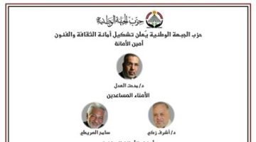 حزب الجبهة الوطنية يعلن تشكيل أمانة الثقافة والفنون برئاسة د. مدحت العدل
