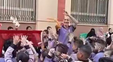 المدير المرح رزق.. يرتدي زي المدرسة وي مع الأراجوز في أول يوم دراسة