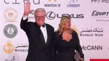 مادلين طبر وحسين فهمي.. توافد النجوم على ريد كاربت ختام مهرجان القاهرة السينمائي