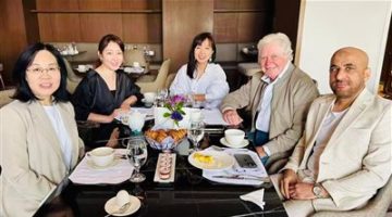 حسين فهمي يستقبل الوفد الصينى ويهديهم هدايا تذكارية من مهرجان القاهرة