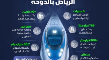إنفوغراف: قطار سريع يقلص المسافة بين الرياض والدوحة إلى ساعتين